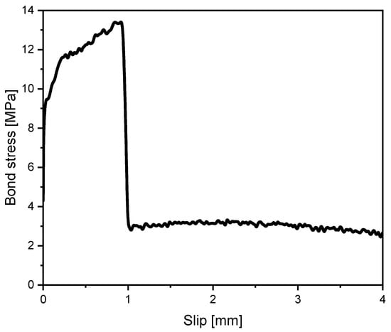 The bond stress of the textile mesh inside the TRM beam can be calculated for a given crack width by considering the bond–slip relationship within the cement matrix as calculated from the pull-out test. This relationship was idealized as follows based on a previous study []: