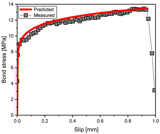 Bond stress–slip relationship: predicted vs. measured for coated carbon-fiber textile reinforcement.