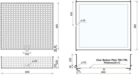 The root-proof performance test method is evaluated by applying each waterproof method and root-proof method inside a perforated root test body that can observe 800 × 800 × 220 mm of planting, planting it, and growing the plant for 24 months so that the root of the plant can grow sufficiently(Refer to Figure 2).