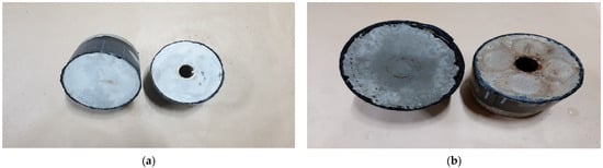 The test results for water tightness are shown in Figure 8 and Figure 9 below. As a result of the water tightness test, all materials were confirmed to have 10 points because no pitcher was generated in the test piece under all conditions.