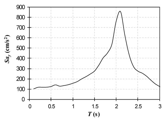 One way to guarantee an accepted damage pattern in low-rise and mid-rise structures designed using RSA is by considering the key structural characteristics in the development of the seismic design spectra, where these spectra provide the necessary lateral strength (in terms of spectral pseudo-acceleration, Say) so that a structure reaches a specific performance target. These spectra are obtained as a function of the dynamic characteristics of soil and the inelastic dynamic response of several single degree of freedom (SDOF) systems. One example are uniform ductility spectra, which are obtained by using reduction factors over elastic response or design spectra [,,,,,,,,]; these factors are generally obtained from the statistical analysis and mathematical regressions of the response of instrumented buildings. These factors are easily implemented in building codes but, unfortunately, since only important buildings have been instrumented, only a few buildings are available to provide information.