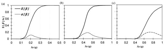 The vulnerability functions, VFs, are the result of the statistical analysis of the whole set of intensity measure vs. loss curves obtained for all of the considered seismic records; as a result, the expected value, E[β], and standard deviation, σ[β], associated to each intensity measure were obtained (Figure 15).