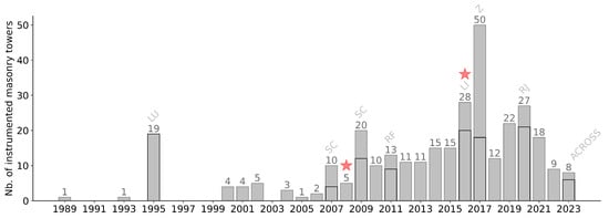 - Compiling 244 instrumented masonry towers assembled from an extensive literature review. Worldwide masonry towers are described in terms of geometric, material features, interaction with adjacent buildings, aging, construction phase, repairs, and instrumentation condition;