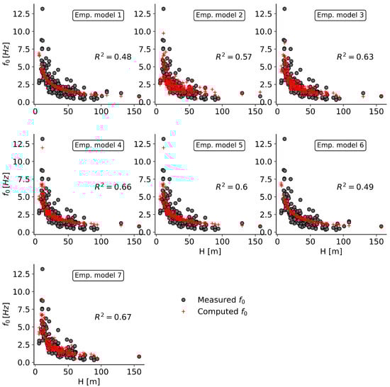 - Shakya, M.; Varum, H.; Vicente, R.; Costa, A. Empirical formulation for estimating the fundamental frequency of slender masonry structures. Int. J. Archit. Herit. 2016, 10, 55–66. [Google Scholar] [CrossRef]