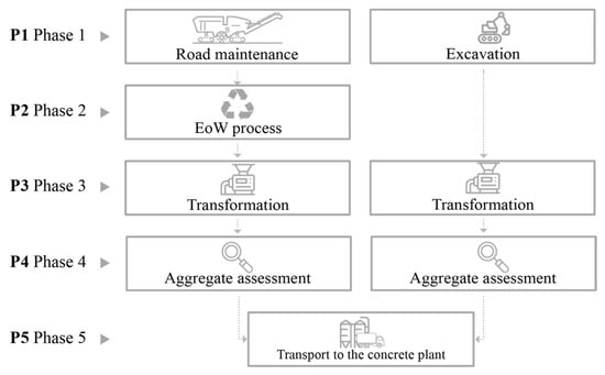 The consultation of these sources allowed individuating similar macro-processing phases for both aggregate types (Figure 6). These phases will be addressed in detail in the Section 3.1.1–Section 3.1.4.