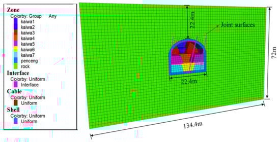 | Surrounding Rock | Brick | Elastic modulus 446 MPa, cohesive force 2.24 MPa, internal friction angle 42° |