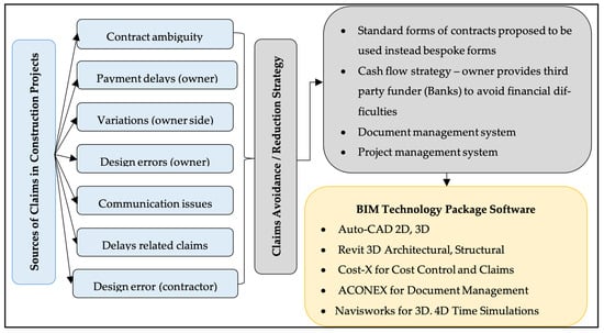 - Ali, B.; Zahoor, H.; Nasir, A.R.; Maqsoom, A.; Khan, R.W.A.; Mazher, K.M. BIM-based claims management system: A centralized information repository for extension of time claims. Autom. Constr. 2020, 110, 102937. [Google Scholar] [CrossRef]