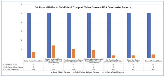 The 50 factors divided to sub-related groups of claims causes in the KSA construction industry [,,,,,].
