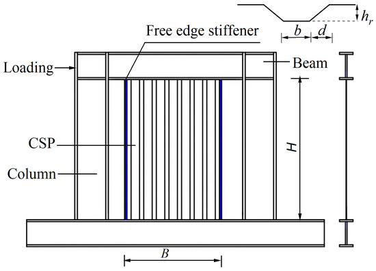 As presented above, extensive research has been conducted on the structural performance of ChSPSWs, including the buckling strength, ultimate strength, failure modes, and behavior after the buckling of CSPs, and there are limited studies on the shear and seismic performances of CvSPSWs. However, the studies on the seismic performance of CboSPSWs are limited, and the loading mechanism, failure modes, and analysis methods of the CboSPSWs with free-edge stiffeners are not described clearly. In light of the above advantages of CboSPSWs, this paper investigated the seismic behavior of CboSPSWs with free-edge stiffeners under seismic loads. The effects of related parameters on the seismic performance were evaluated. The loading mechanism and the failure modes of the CboSPSWs with different parameters were investigated. In addition, the minimum stiffnesses of the free-edge stiffeners of the CboSPSW was proposed, and the existing design method for the CboSPSW was examined.