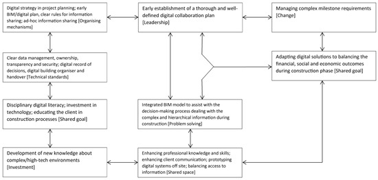 In addition, the present study provides insight to building and construction professionals, as well as investors and building developers, to allow them to extract tangible strategies for investing, planning, and implementing digital collaboration, as outlined in the developed models (Figure 1 and Figure 2). These strategies are useful for mixed-use housing developments as well as other complex building and construction projects, as the applicability of this study has been supported by providing rich descriptions of “portable principles” [69] that can be transferred to different contexts. In accomplishing the study’s stated aim, as outlined Section 1, we have meticulously unravelled the intricacies of digital collaboration. In summary, several strategies pertaining to digital collaboration, as perceived by the stakeholders, are highlighted below: