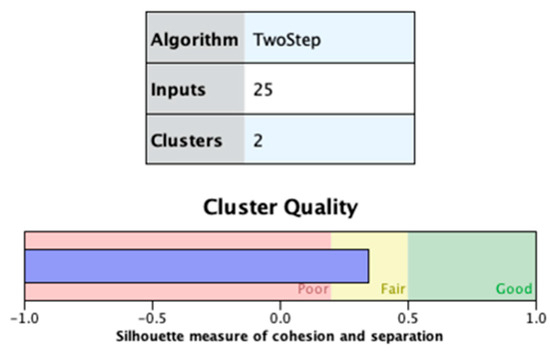 The results obtained from a first model generated two differentiated clusters with only a ‘fair’ quality of the model (see Figure 3).