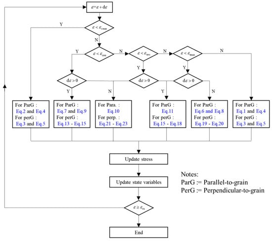- Benvenuti, E.; Orlando, N.; Gebhardt, C.; Kaliske, M. An orthotropic multi-surface damage-plasticity FE-formulation for wood: Part I—Constitutive model. Comput. Struct. 2020, 240, 106350. [Google Scholar] [CrossRef]