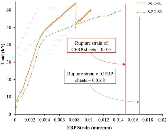 4.3. FRP-Strengthened Specimens S-FO-S1 and S-FO-S2