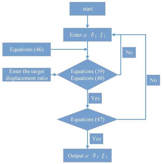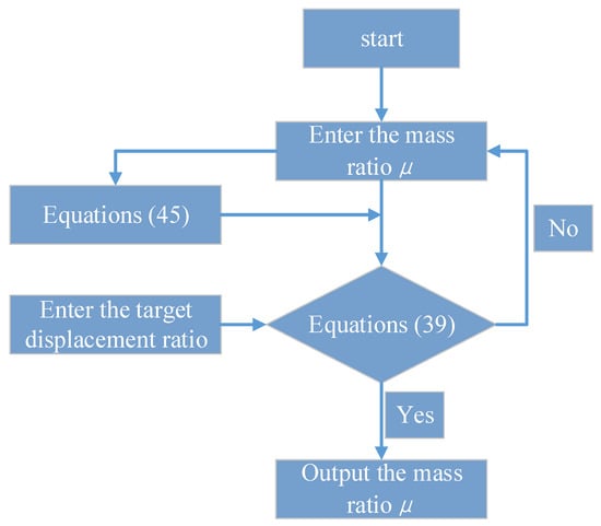 According to the above theory, the parameter optimization process of the fixed-point theory is as follows: (1) the nominal stiffness ratio (δ2) is supposed first. (2) Subsequently, the Equations (44) and (45) and the displacement transfer function of the original structure without inherent damping are substituted into Equation (39) to obtain the displacement ratio function expression only about the mass ratio (μ). (3) Finally, the target displacement ratio is supposed, and the optimal stiffness ratio (δ1) and optimal nominal damping ratio (ξ2) will be obtained when the input mass ratio (μ) makes the Equation (39) reach target displacement ratio. The parameter optimization process of the fixed-point theory is shown in Figure 8.