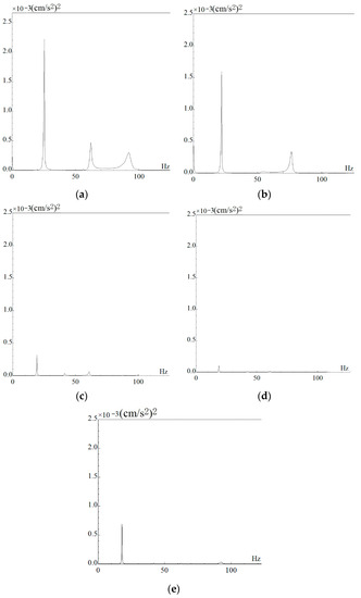 The frequency spectrum: (a) TCC0.2; (b) TCC0.3; (c) TCC0.4; (d) TCC0.4-CO12; (e) and TCC0.4-hc120.