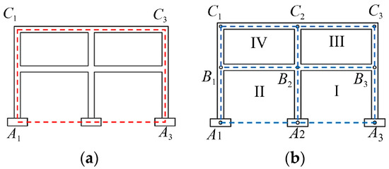 Schematic diagram of building displacement measurement points. (a) Frame. (b) Panels.