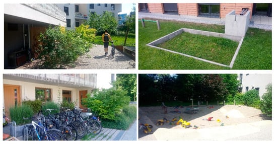 Both neighborhoods promote communal living principles and interactions. The diversity of materializations, spatial configurations, land use, and landscape design creates sensory-rich environments. The transition between private and public spaces and the various building typologies embedded within the homogeneous urban tissue provide unique experiences. The rich public content offers provide a basis for the successful maintenance and further development of cultural landscapes in both neighborhoods (Figure 1, Figure 2, Figure 3 and Figure 4).