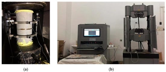 For static loading, the whole loading process was controlled by the displacement. The loading speed was set as 0.5 mm/min. For fatigue loading, the force control mode was applied to two loading stages. The first loading stage was static loading until the loads reached the upper loads. Then, the second stage was cyclic loading with the same cyclic amplitude and a loading frequency of 3 Hz. When the cyclic number reached 2500, 5000, 7500, 10,000, …, and 2,000,000, an interim static loading from 0 to the corresponding upper loads was performed to collect experimental data under different cycles. According to the engineering requirement, 2 million was set as the maximum cycle number [46].