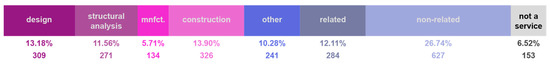 Services not pertaining to the design and manufacturing of the load-bearing components are merged into three secondary Service Categories. These categories were developed by the authors as part of the coding process based on the services’ relation to the construction process. These are: