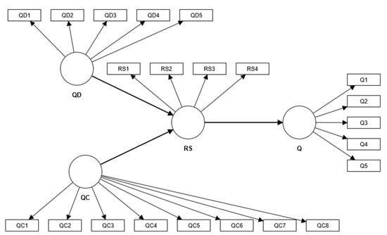 Figure 3 depicts the affected families’ perception of the resettlement on their quality of life through their residential satisfaction. The Satisfaction with Life Scale (SWLS) by Diener et al. [29] was adopted to measure the MAFs’ perceived QoL. The quality of dwelling (QD) and quality of context (QC) of the resettlement community were adopted as measures of the MAFs’ perceived resettlement quality. QD refers to the interior and exterior features of the housing, which include the quality of construction, overcrowding, quality of basic amenities, external appearance, and appropriateness of interior configuration and comfort. QC refers to the neighborhood features, which includes the availability of public facilities, safety and security, social relationships, and infrastructural services. Residential satisfaction is the mediating construct in the model. It captures how content MAFs are with their housing, neighborhood, public facilities, and word of mouth about the resettlement community.