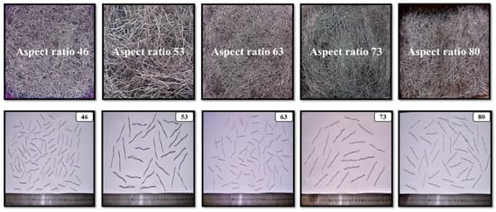 The five (5) aspect ratios (L/d) of the chosen fibers are presented in Table 3.