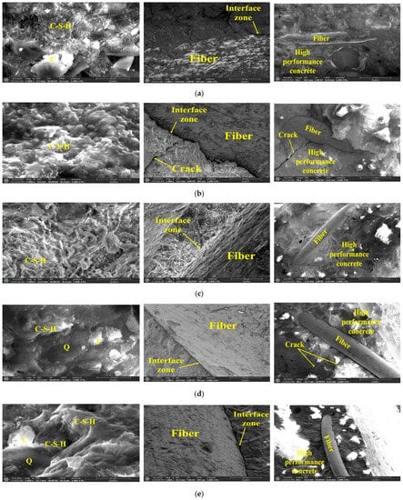This knowledge gap indicates a lack of comprehension about the behavior of these fibers when encountering forces that lead to their extraction from the concrete, particularly in UHPC with elevated shrinkage. Viktorovich et al. [] suggest that addressing the practical challenges linked to fiber-reinforced concrete’s application requires the development of a method to compute its crack resistance across diverse load conditions and design attributes. This approach would empower engineers to evaluate the crack resistance of fiber-reinforced concrete, ensuring its structural durability and integrity in a range of construction contexts. Eik and Puttonen (2011) reported also that the efficiency of load transfer depends on the bonding interface between the matrix and fibers, the fiber orientation, and the crack propagation [].