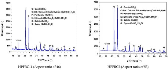 Steel and synthetic fibers are frequently used to enhance the mechanical properties of cementitious materials, leading to improvements in tensile and flexural strength, as well as enhancing crack resistance and toughness [,]. Nevertheless, the utilization of these fibers is accompanied by certain drawbacks, including high costs and significant CO2 emissions during production []. The incorporation of fibrous reinforcement effectively mitigates the brittleness of concrete, which is typically brittle and possesses low tensile strength in its unreinforced state [,].