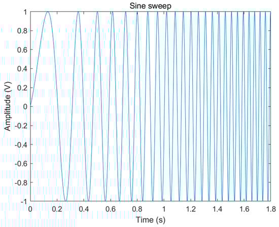 The start frequency of this excitation is 1 Hz, the end frequency is 2500 Hz, and the duration is 180 s. Figure 2 shows a schematic diagram of the excitation from 0 to 1.8 s.