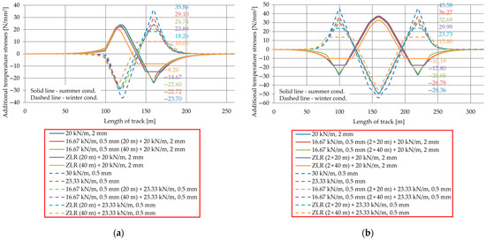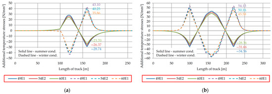 Figure 8 shows the diagrams of additional temperature stresses in summer and winter conditions depending on the rail profile.