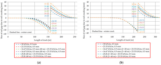 Based on the obtained results, additional temperature stresses can be reduced by decreasing the track longitudinal resistance. Rail fastening systems with reduced longitudinal resistance of the rail (less than 7 kN according to [44]) are applied on a limited length of CWRs on the bridge. The limiting factor for the application of rail fastening systems with reduced longitudinal resistance of the rail is the size of the rail gap due to rail cracking in winter conditions (Figure 12).