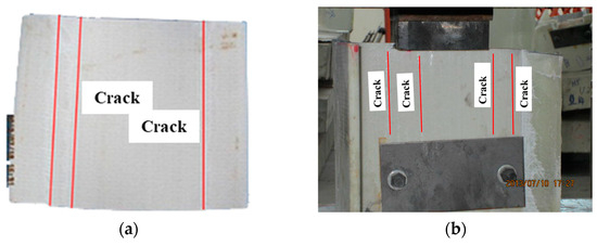 Typical failure modes of specimens under direct shear testing: (a) failure mode of S-1; (b) failure mode of B-1.