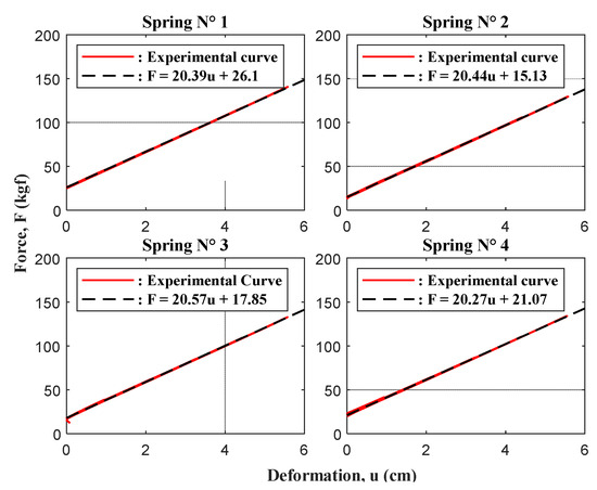 Finally, using Equation (7), the degree of freedom (DOF) of the spring system, shown in Figure 2, is determined by Maureira-Carsalade et al. [30]. The latter only considers the deformation due to the displacement of the device, not the initial elongation due to the pretension of the spring system, .