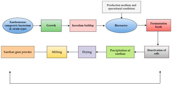 - Palaniraj, A.; Jayaraman, V. Production, recovery and applications of xanthan gum by Xanthomonas campestris. J. Food Eng. 2011, 106, 1–12. [Google Scholar] [CrossRef]