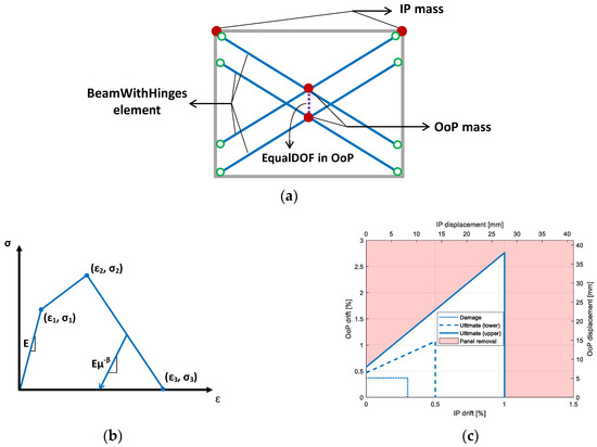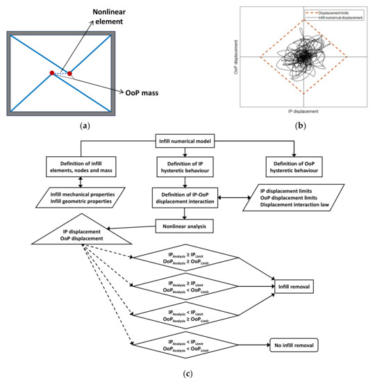 - The interaction between IP and OoP actions must be taken into consideration in the model; specifically, it must be taken into account how IP damage on infill may affect the OoP response and vice versa. In other words, the model should consider OoP strength and stiffness degradation due to IP damage and vice versa.