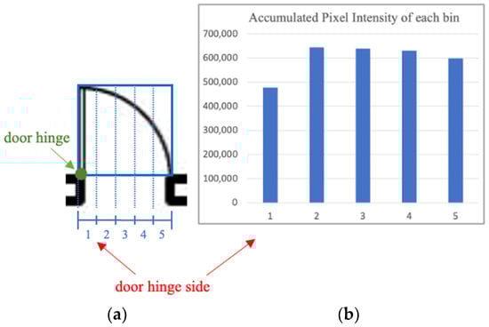 Door hinge position indication. (a) Inferred door; (b) column chart for door hinge position identification.