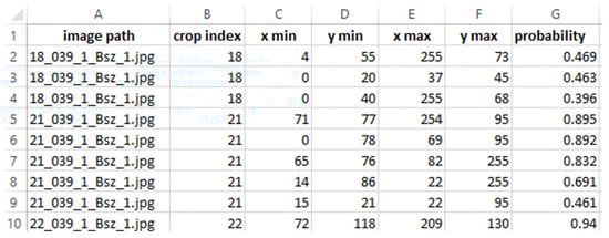 Each sheet with 100 crops of 800 × 800 pixels was randomly sampled without scaling, as shown in Figure 5, and the object annotation positions were recomputed to the local crop coordinates. After this random cropping process, a JSON file was generated for each crop. The JSON files were organized into the required sets to prepare for model training, as defined in Figure 2.