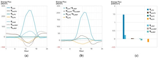Finally, Equations (12) and (13) are used to calculate the sensible heat flux (qc,PV,up in W/m2):