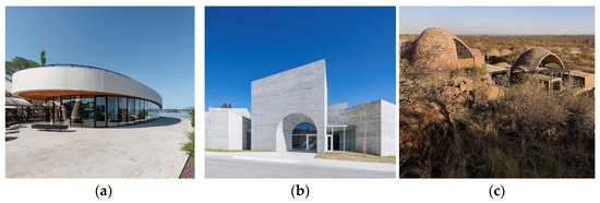 (a) Maritime Heritage Interpretation Center DUBoak in Croatia, reprinted with permission from Ref. [7], 2023, Pintos; (b) Romanesque Interpretation Center in Portugal, reprinted with permission from Ref. [8], 2023, Pereira and (c) Mapungubwe Interpretation Center in South Africa, reprinted with permission from Ref. [9], 2023, Bann.