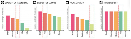 Biodiversity conservation is important to ensure sustainability and human well-being, as it represents the relationship between living beings and the natural environment they inhabit [1]. Currently, on a global scale, 17 megadiverse countries have been classified. Despite occupying only 10% of the total surface area of the planet, they also host 70% of the biodiversity [2]. The ranking of these countries is directly related to the amount of endemic plant and animal species, as well as the climates and ecosystems present (Figure 1).
