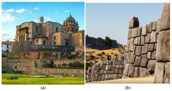 Highly significant constructions for the Inca civilization (a) Coricancha, reprinted with permission from Ref. [14], 2010, Escudero; (b) Sacsayhuaman, reprinted with permission from Ref. [15], 2021, Guerra.