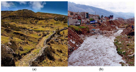 Current Issues with (a) Qhapaq Ñan, reprinted with permission from Ref. [20], 2018, Programa de Naciones Unidas para el Desarrollo; (b) the Huatanay River Due to Solid Waste Disposal, reprinted with permission from Ref. [21], 2022, Mendivel.