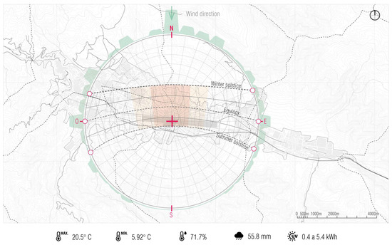 In Figure 9, the analysis of Cusco’s solar chart is presented, delineating the specific periods within the year characterized by heightened solar exposure on building facades.