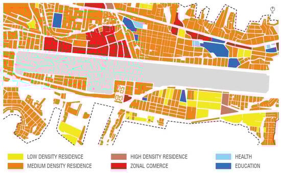 A large concentration of housing (medium-density residences and low-density residences) and a commercial area on top of the runway would allow us to understand of the notorious lack of a buffer zone (Figure 13).