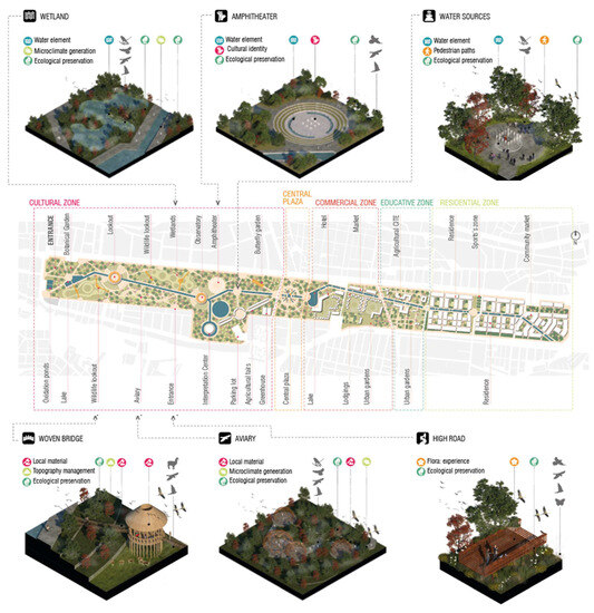 Within the strategies for the development of the urban proposal, emphasis is placed on social integration, a sense of place-based identity, the utilization of clean energy and local products, and most notably, a profound connection with nature (Figure 23).