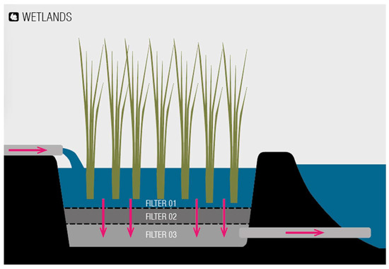 In Figure 17, the water filters of the Huatanay River are shown. In the first phase, an underground canal is proposed, originating from the Huatanay River and channeled towards the project site. The water from the canal passes through oxidation ponds, which are responsible for removing waste, oils, sands, and various sedimentable solids, as well as compounds like nitrates, ammonia, and phosphates, among others.