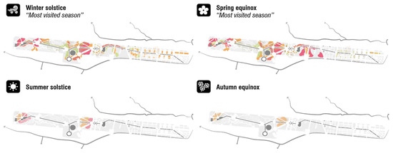 In Figure 24, the landscape’s color combination during different seasons can be observed, according to crops regulated by the lunar calendar, which served as the foundation for the Incas’ cyclical agricultural system. This connection between the lunar calendar and the blossoming of species has been passed down through generations in many traditional cultures. Some farmers and gardeners still employ this knowledge to determine the optimal timing for planting and harvesting, taking into account lunar phases.