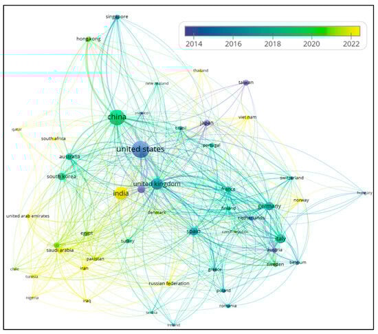 To ensure the reliability and validity of the analysis, repeated validations of the results were conducted, including duplicate screening of initial data, retesting of the software, and random selective tests of outputs. Scientometric analysis, while valuable for assessing research trends and patterns, comes with inherent limitations that should be considered []. One significant constraint is its heavy reliance on bibliometric data, primarily citations and publication counts. Such data might not provide a comprehensive picture of research quality, impact, or context. Another limitation is not accounting for qualitative aspects of research []. Consequently, this may lead to the inclusion of studies that have garnered citations due to factors other than their genuine impact or contributions. Lastly, scientometric analysis focuses on academic impacts and may overlook non-academic impacts un which have significant real-world implications or application. In essence, these limitations can lead to a distorted view of research trends, impact, and relevance. To mitigate these effects, it is crucial to acknowledge these limitations and complement scientometric analyses with qualitative evaluations and a broader consideration of research context and influence [].