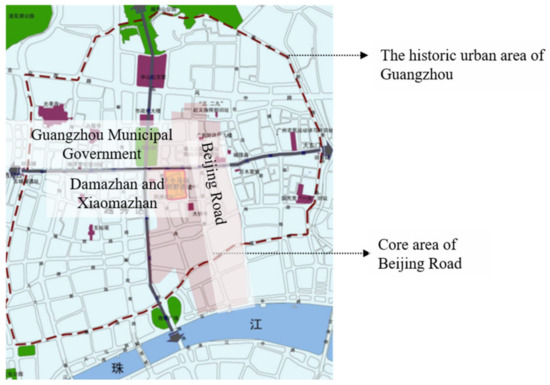 Figure 1. Schematic diagram of the location of Damazhan and Xiaomazhan area within the Guangzhou historic urban area.