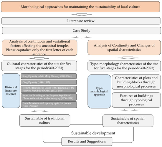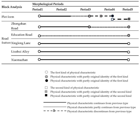 In recent years, by combining typology and morphology, research on typo-morphology has revealed the connection between tradition and modernity, and these studies are also being applied to urban planning and design to highlight the importance of traditional forms. The application of typology and morphological theories in China has continued to pay attention to the changes and development of urban spatial features and has also explored comprehensive research methodologies [1] to solve problems in urban protection and management. Although typological research reveals and defines the continuity of spatial feature changes [3,9,10], there is little research on interpreting cultural elements of sustainable development by tracing cultural processes. This paper aims to combine the perspective of cultural sustainable analysis with traditional typo-morphological methods of urban spatial analysis, which can not only supplement the development of typo-methodology, but most importantly, guide the cultural conservation and spatial development of urban conservation areas.