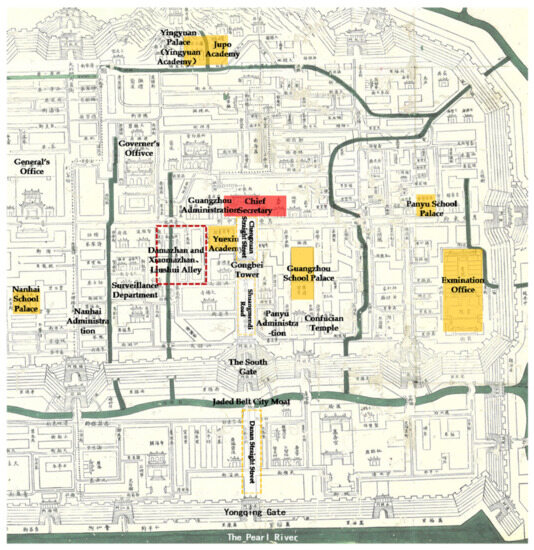 41. Local Chronicles Office of Guangzhou Yuexiu District. Political Consultative Conference Study Document of Guangzhou Yuexiu District; Overview of Guangzhou Yuexiu Ancient Academy; Local Chronicles Office of Guangzhou Yuexiu District: Guangzhou, China, 2002. [Google Scholar]